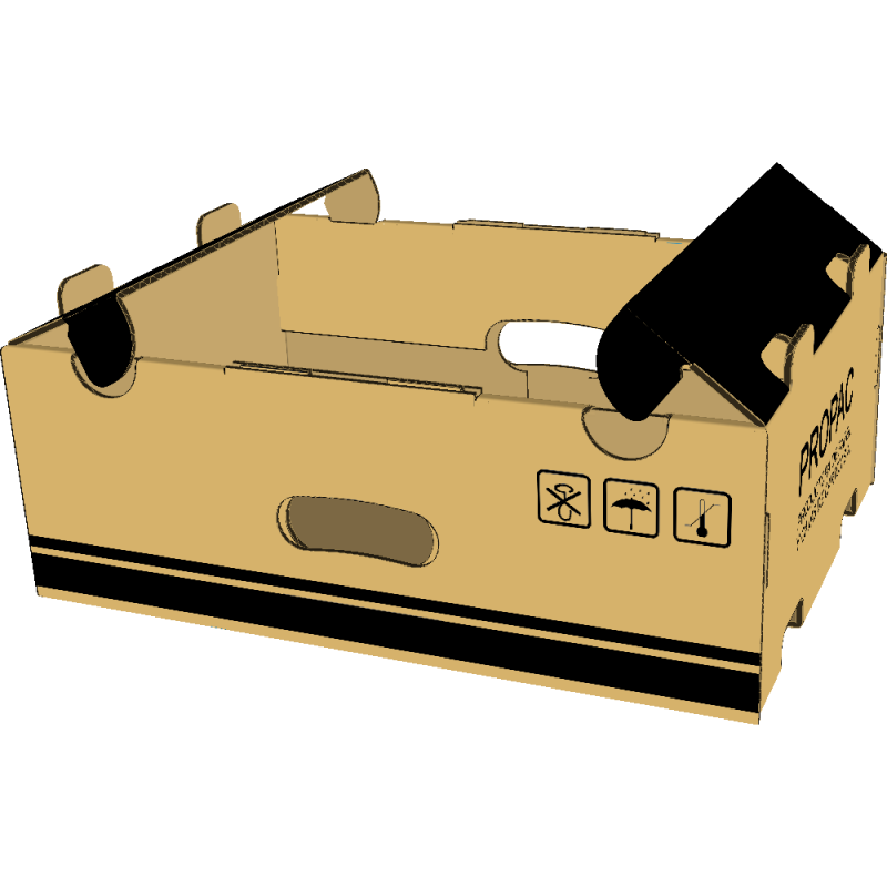 Bandejas troqueladas de armado automático, especiales para empacar frutas y verduras con ventholes para la respiración y